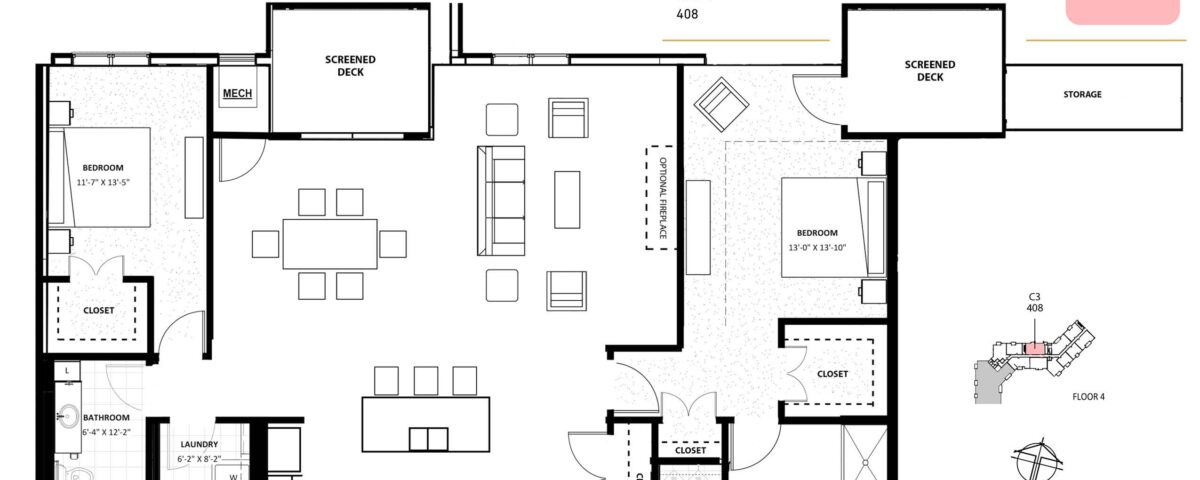 This one-of-a-kind 1,655 SF residence at Artessa Maple Grove features 2 bedrooms / 2 bathrooms with a spacious open floorplan kitchen and living room, large walk-in closets, a spacious dining area, and two screened-in, maintenance-free decks. Make this home your own through one of our finish collections featuring quartz countertops, luxury vinyl plank flooring, stained or painted maple soft-close cabinetry, and more!